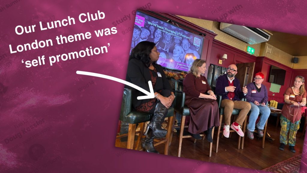 Our theme was self promotion and we introduced questions for attendees to discuss so they could get to know each other better. It flowed into deeper discussions about work, challenges, and ideas. When the event finished, most people stayed and we enjoyed each other’s company in the great setting we have of a pub in Wandsworth.