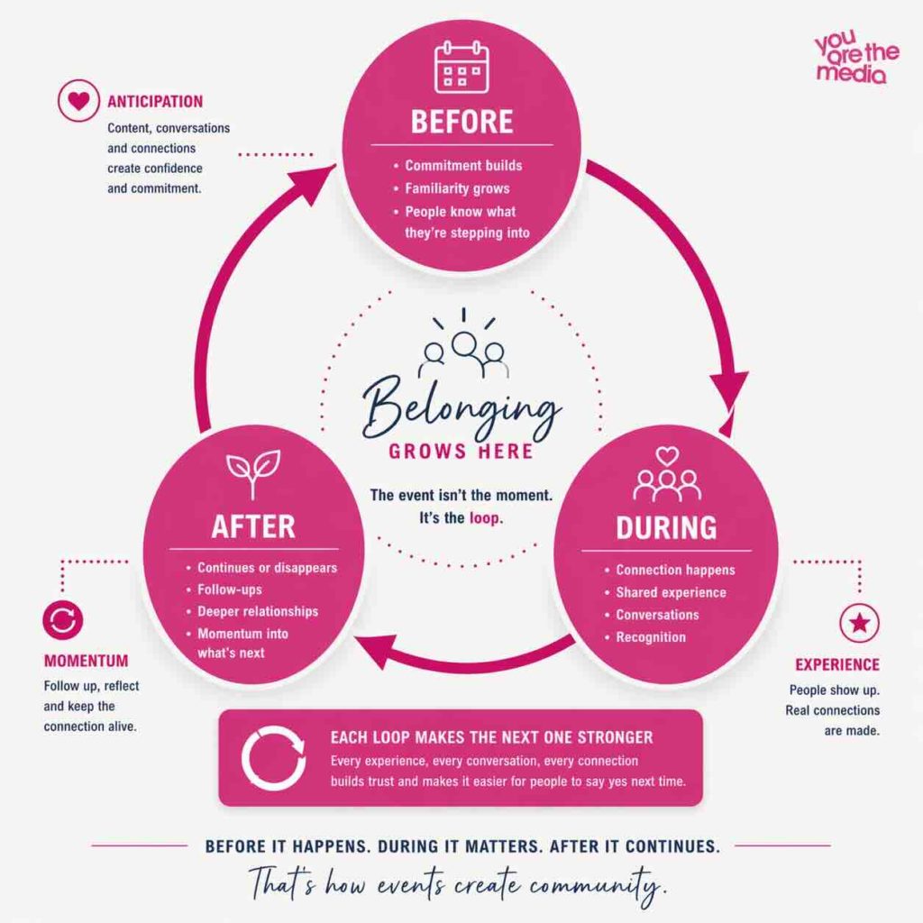 A one-off event is a transaction, a connected event is a relationship. Events survive downturns when they behave like communities, not products.